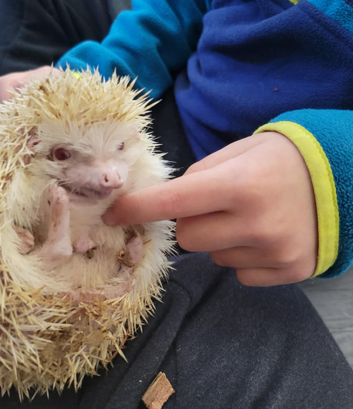 Cleo is my pet hedgehog. She likes to eat dead worms mixed with other stuff. If she was in the wild she would use her spikes to fight off animals that tried to eat her. She is nocturnal. She is awake in the night- time. She likes being by herself because it tells her that she is really safe.